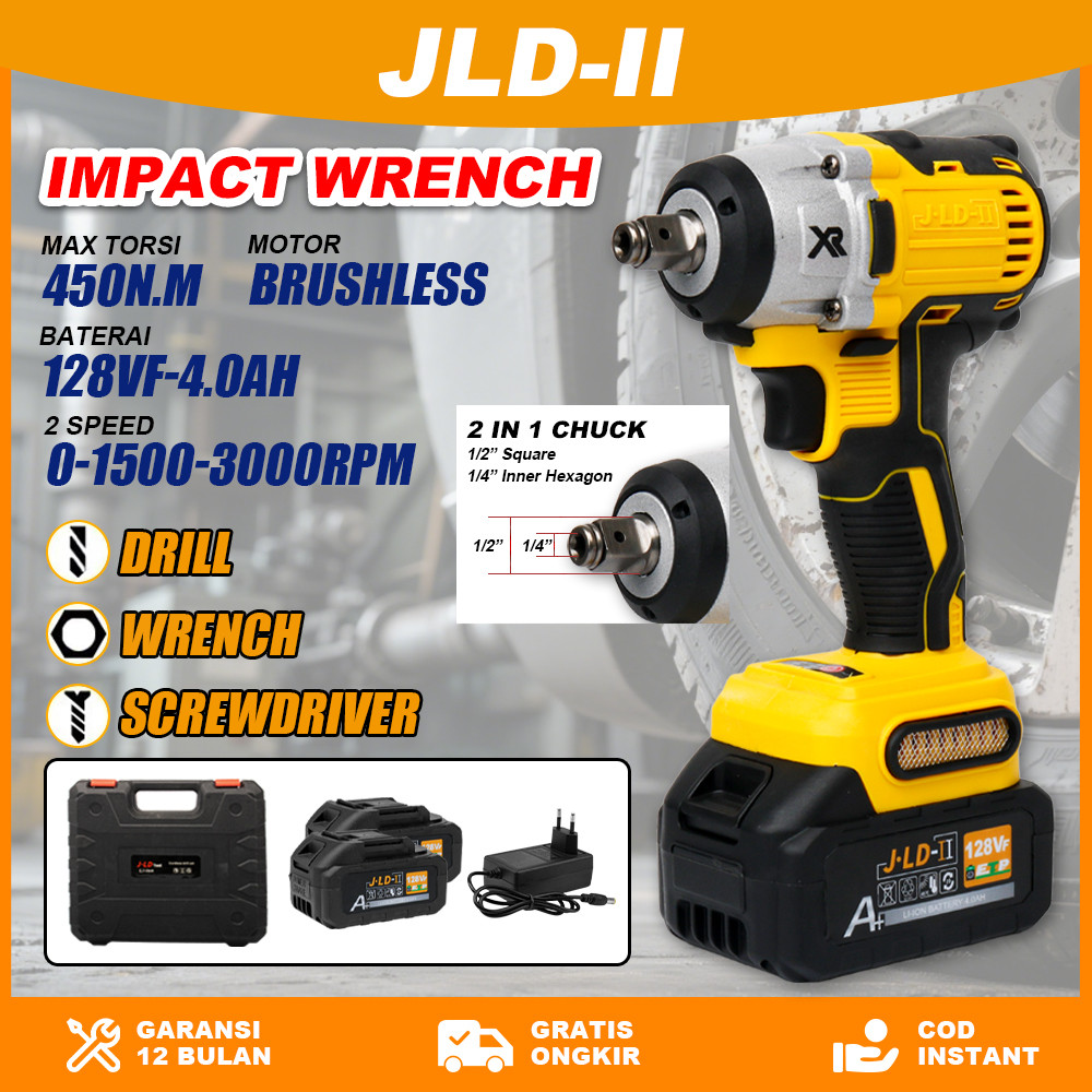 JLD-Ⅱ Cordless Impact Wrench Brushless 128vf 450N.M Mesin Impact Kunci Impact Pembuka Baut Mesin Bor Untuk Baut