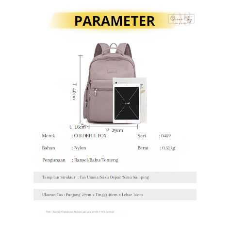 Colorful Fox Original/Ocean Sky - COLORFUL FOX 0459 Tas Ransel Wanita Backpack Wanita Remaja Tas Bahan Anti Air muat laptop 15inch