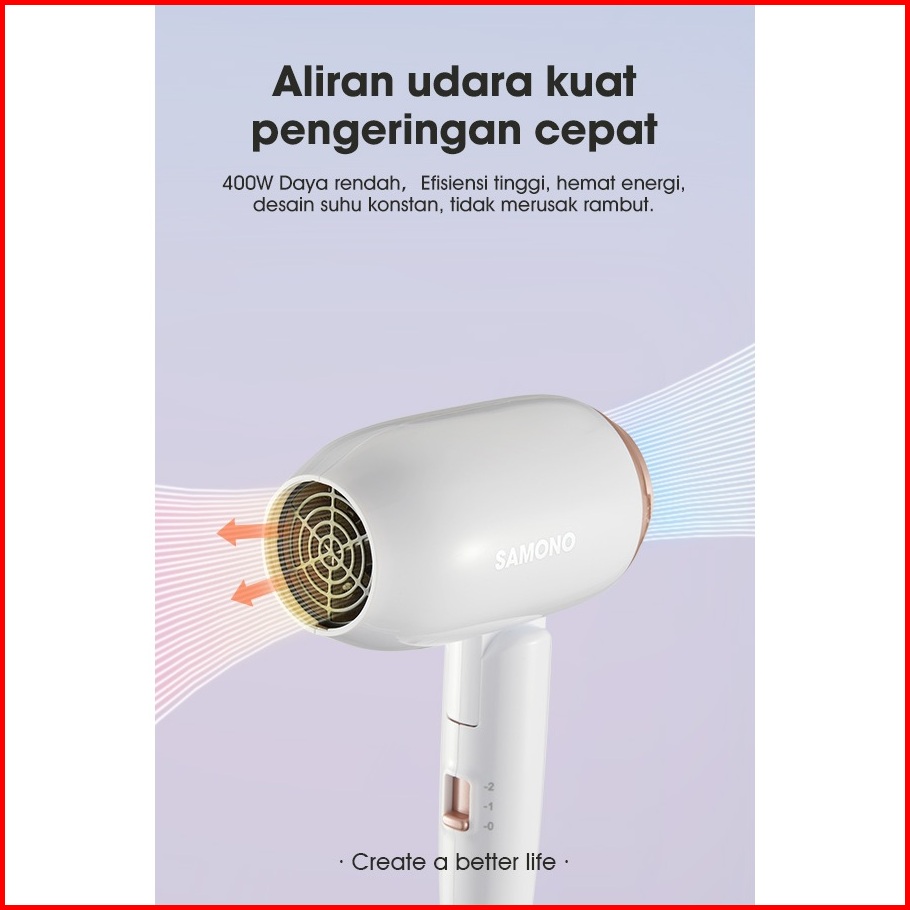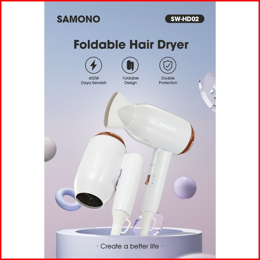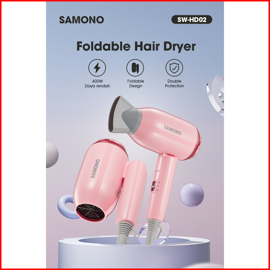 Samono Hair Dryer Lipat Compact Low Watt Pengering Rambut Travel Garansi 1 Tahun Sw-hd02
