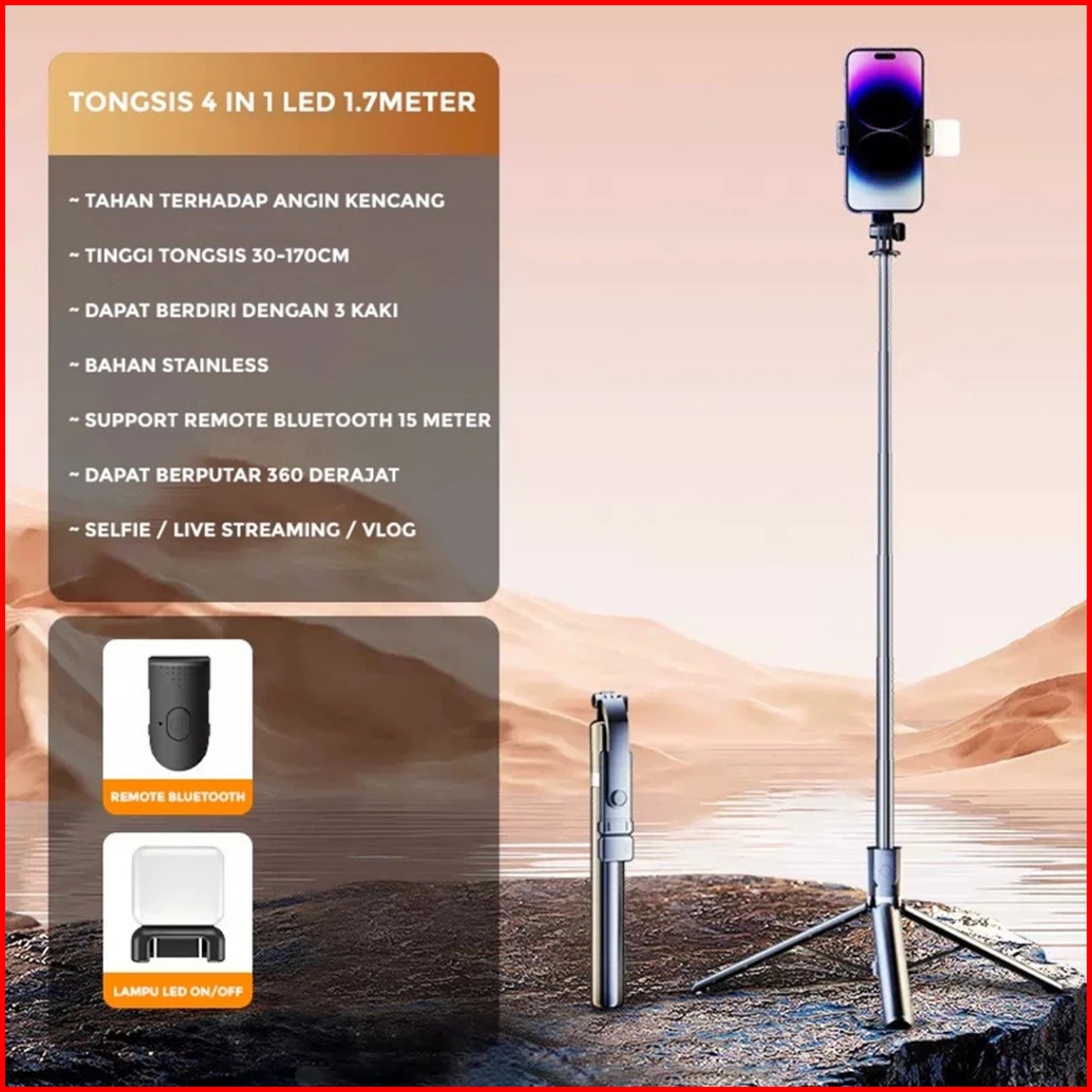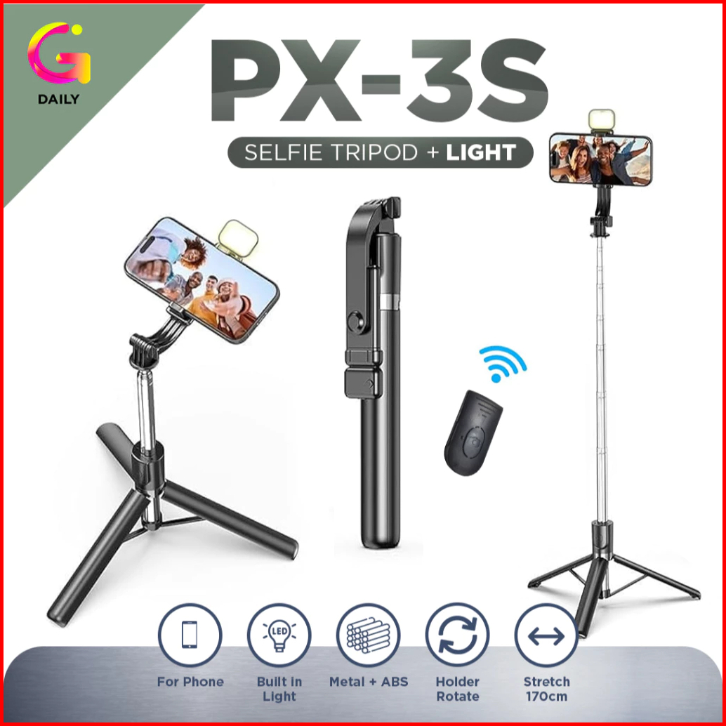 Tripod Px-3s Tinggi 170cm Wireless R1l Selfie Stick Hp Lengkap Dengan Remot Bluetooth Dan Lampu Led