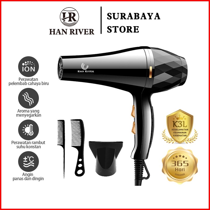 Han River Hair Dryer 800w Cold Hot Wind Pengatur Panas Hairdryer Pengering -hrhd03bk