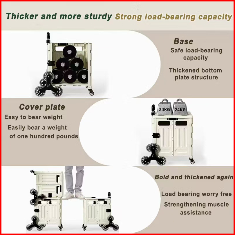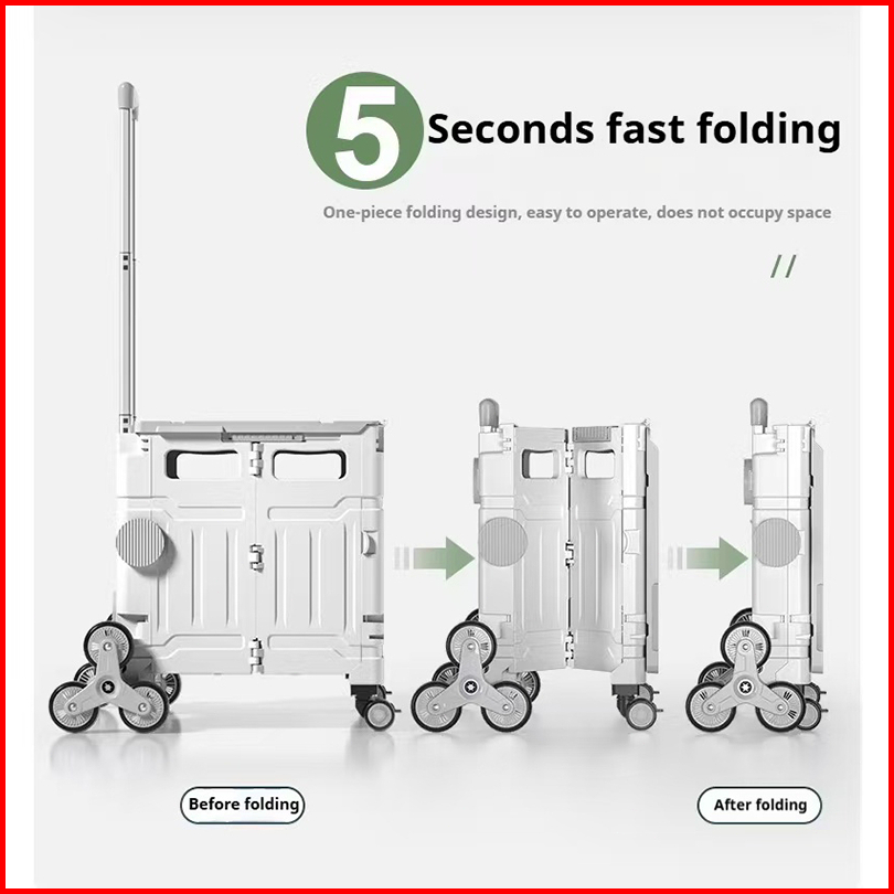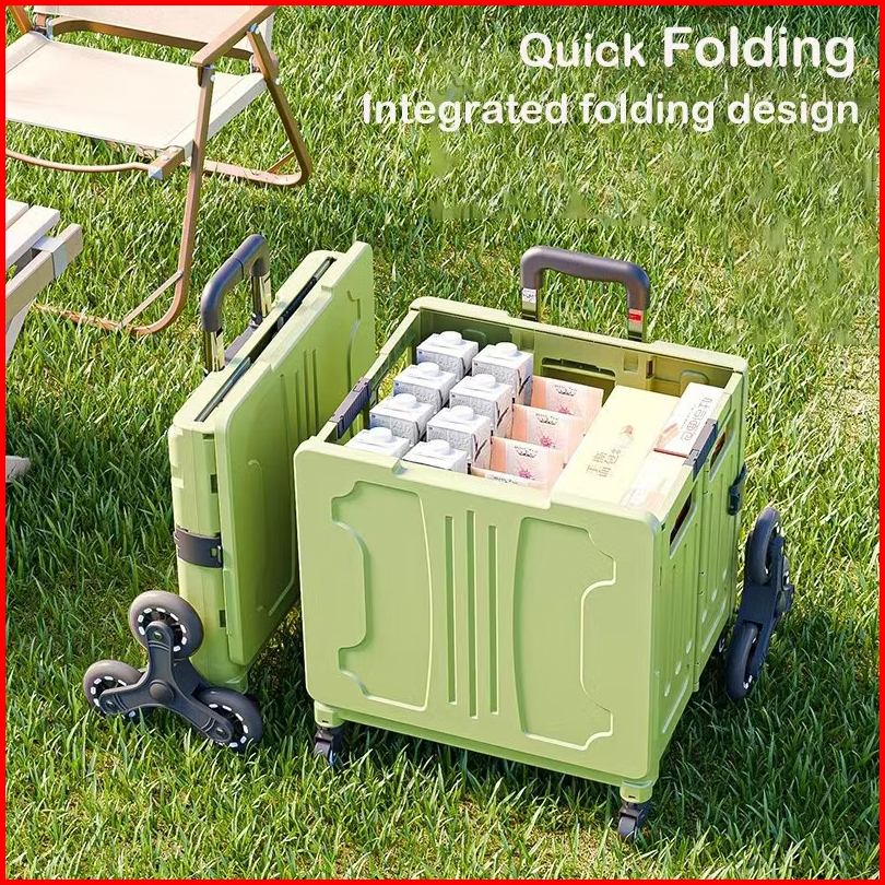 Troli Lipat Portabel 54l Keranjang Belanja Troli Berkemah Besar Troli Karet Roda