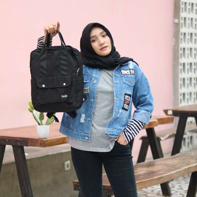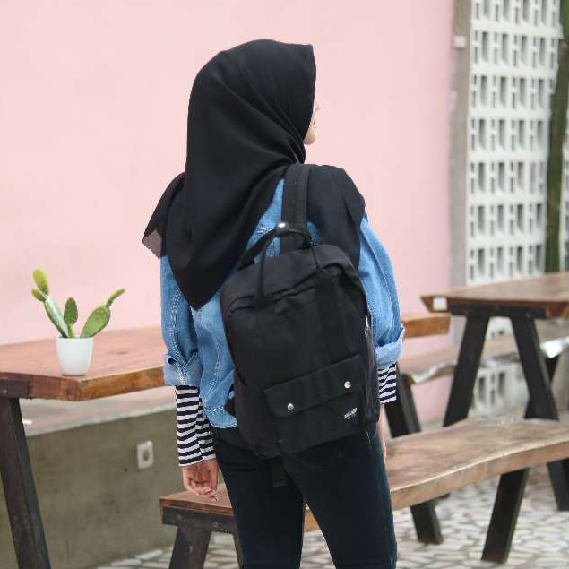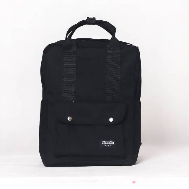 Himeku NAMI BLACK Backpack - Tas Sekolah Kerja Medium - Tas Laptop - Ransel Pria Wanita Kanvas