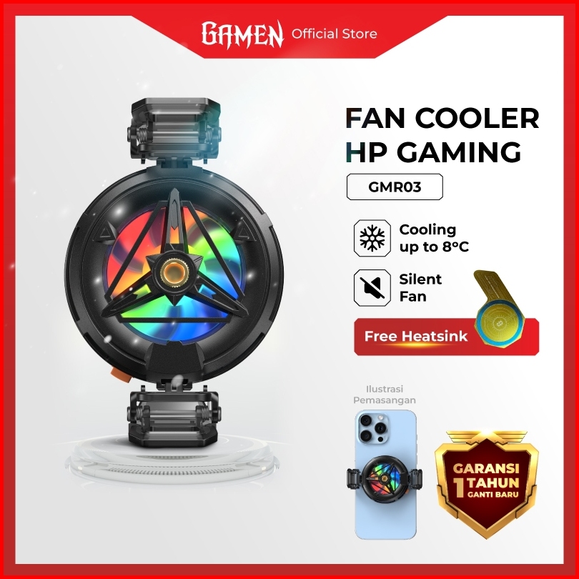 Gamen Funcooler Fan Cooler Hp Gaming Magnetic Rgb Light Gmr03 Black Myth Wukong Type-c Up To 10 Derajat Celcius Silent F