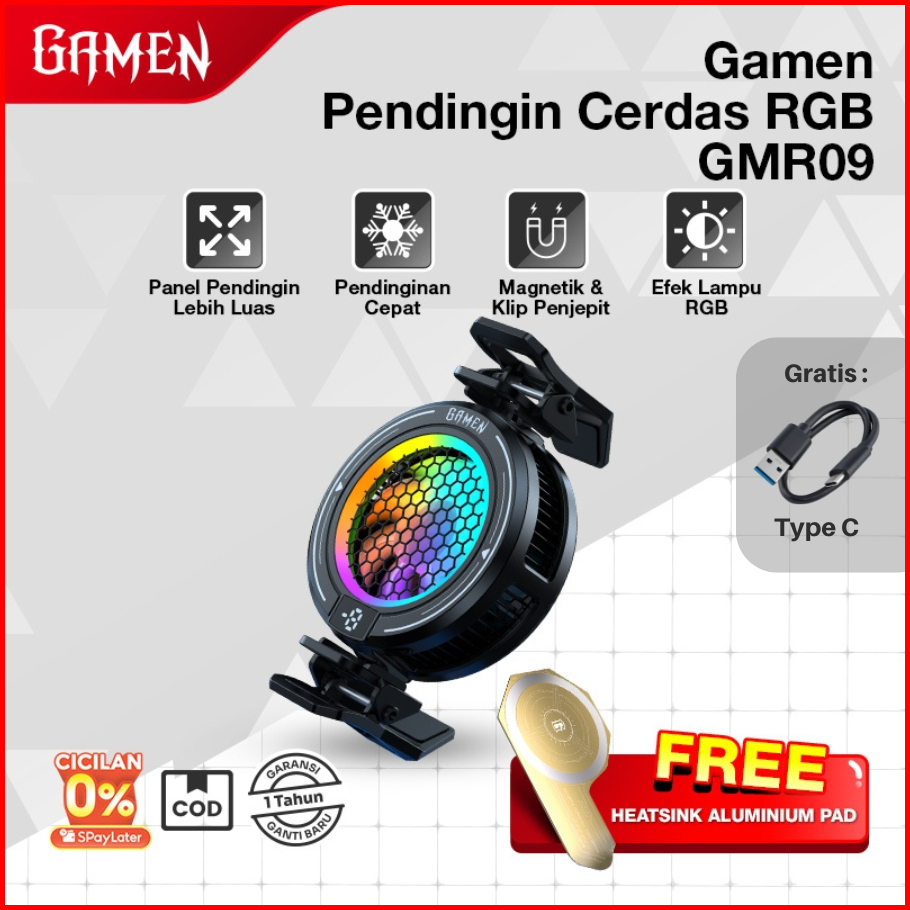 Gamen Funcooler Fan Cooler Hp Magnetic Heatsink Type-c Rgb Gmr09 Dengan Klip Penjepit Led Display Pendingin Hp Semikondu