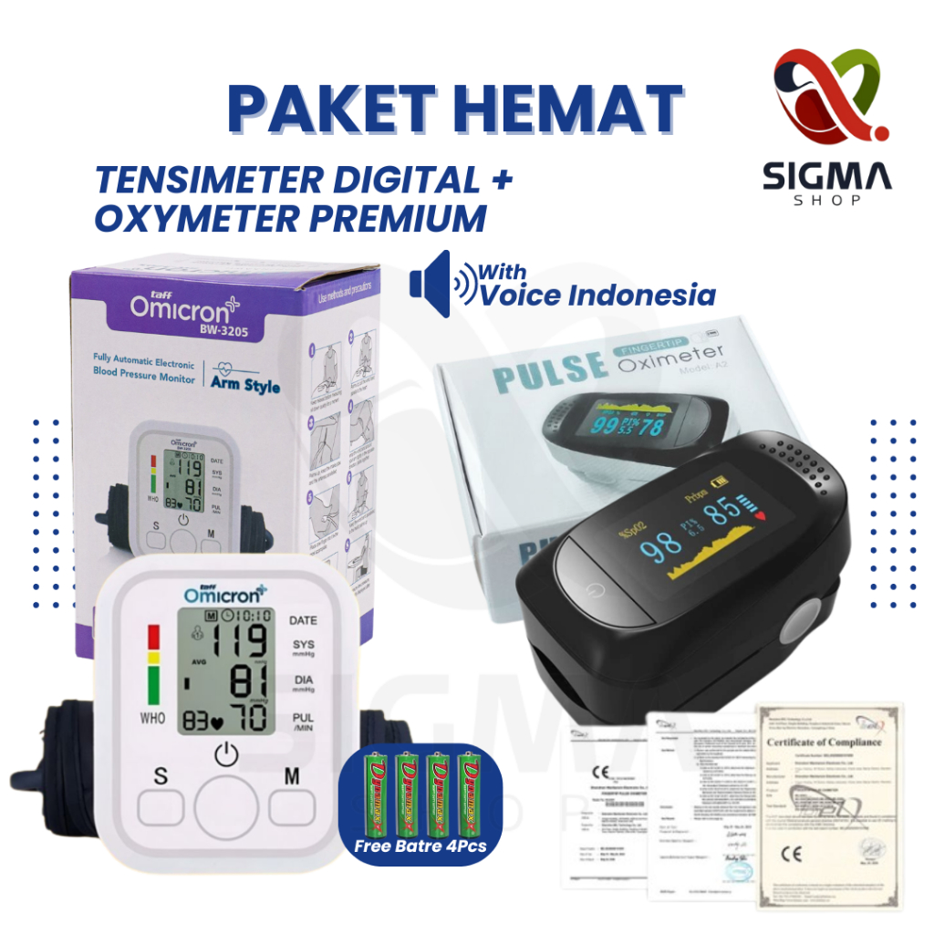 Paket Hemat Tensimeter Digital dan Oxymeter Fingertip Pulse Alat Ukur Kadar Oksigen Detak Jantung Original Alat Cek Tens