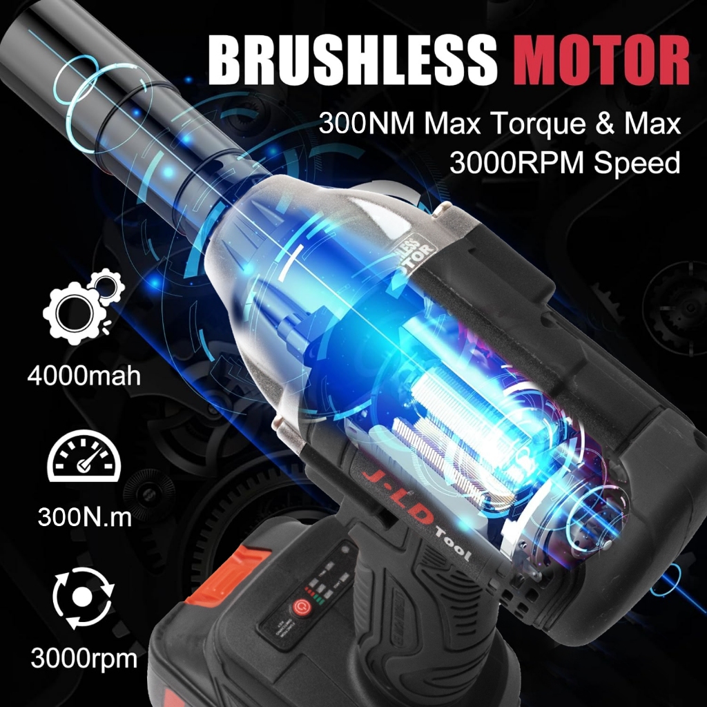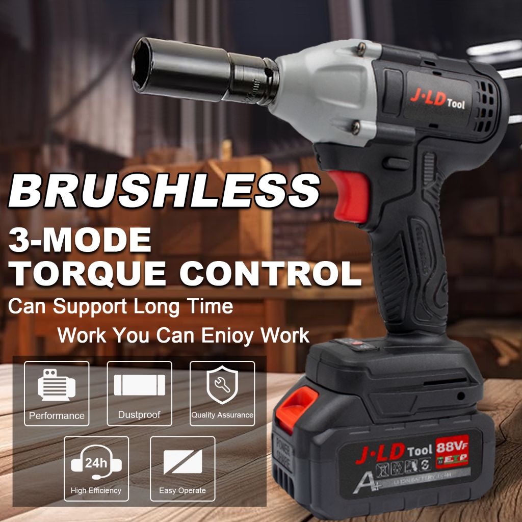 JLD Impact Wrench 13mm Cordless Brushless Mesin Bor 350N.M Bolak Balik Mesin Buka Baut Driver 88VF