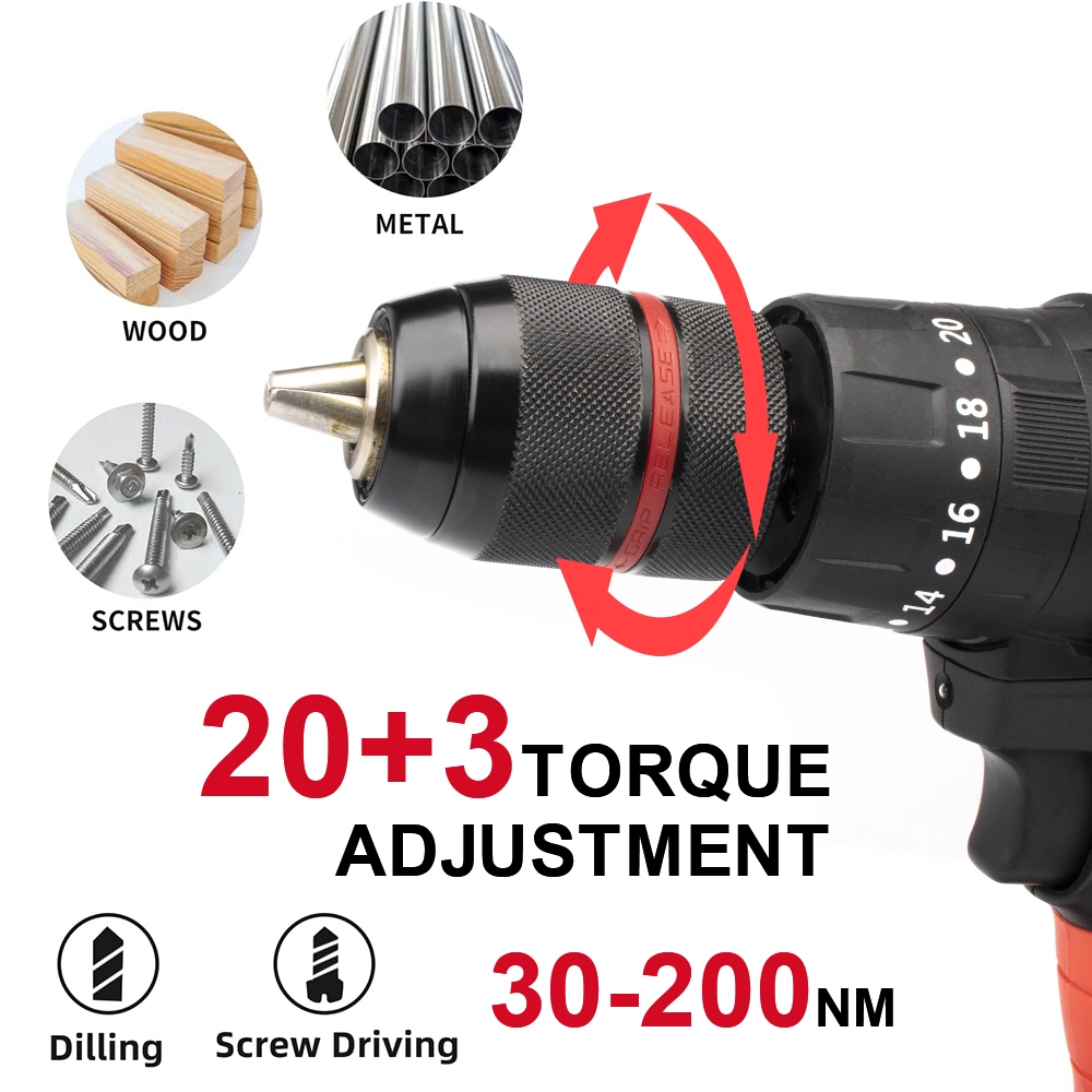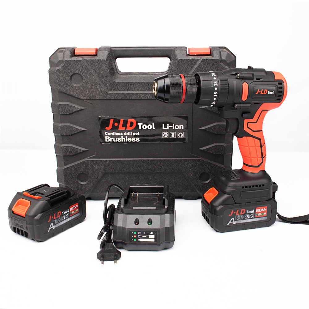 JLD Brushless Mesin Bor Baterai 13mm Cordless Impact Drill 88Vf Mesin bor cas 2 baterai Bagus Mesin bor beton 200NM mesi