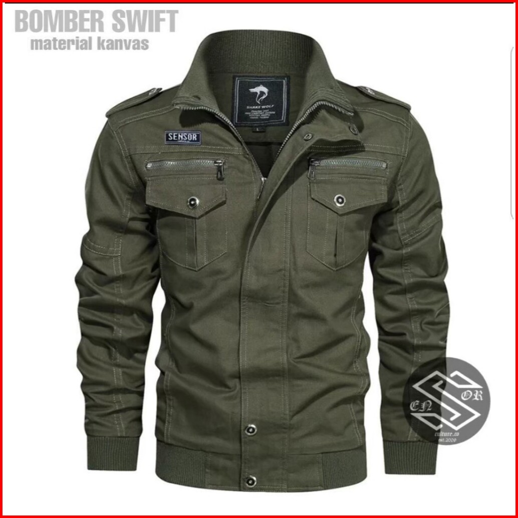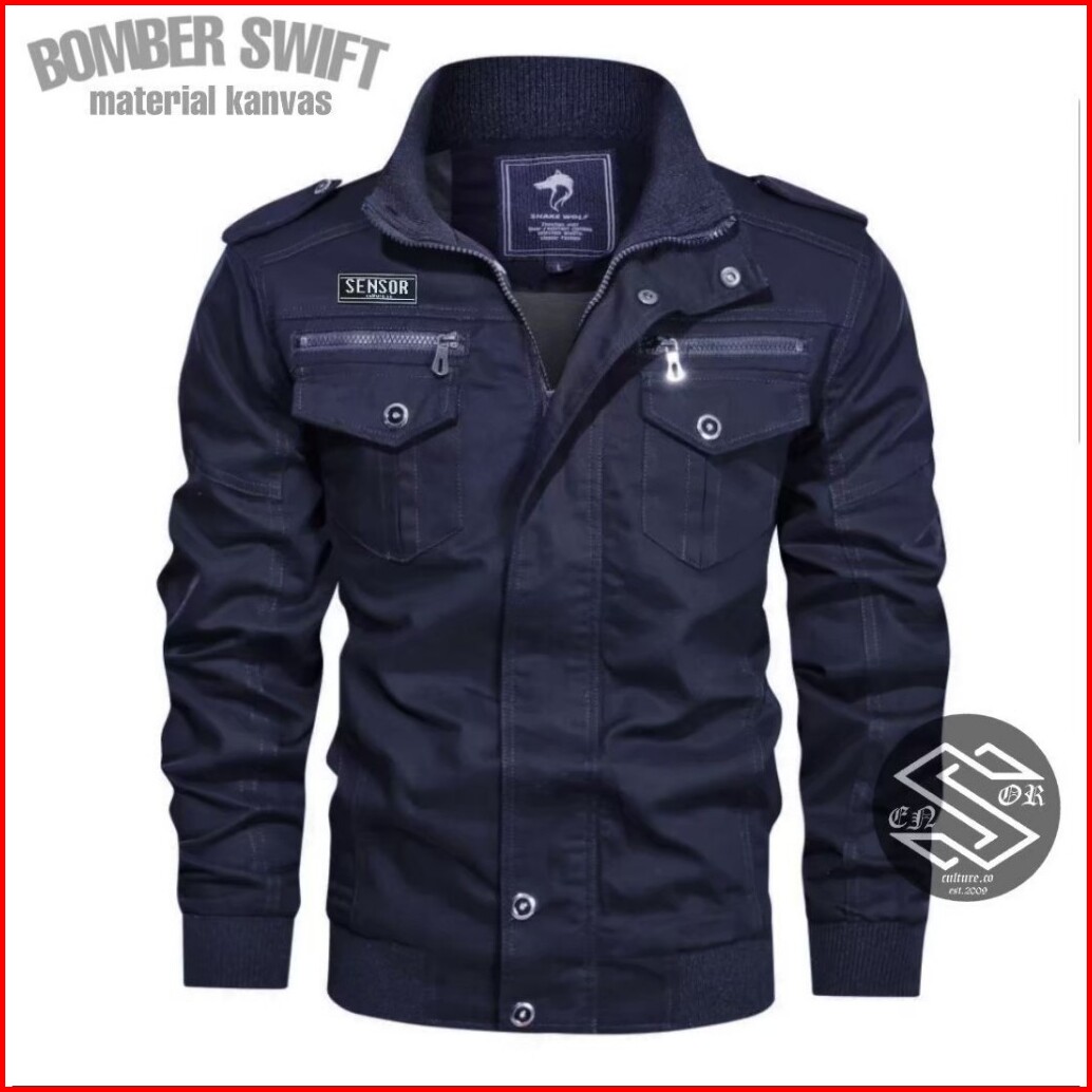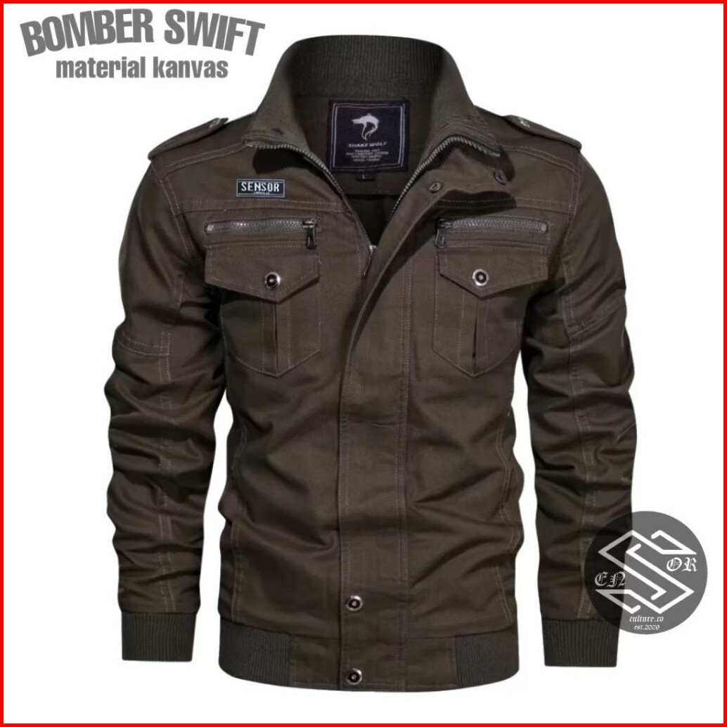 Jaket Bomber Swift Pria Distro Bahan Baby Canvas