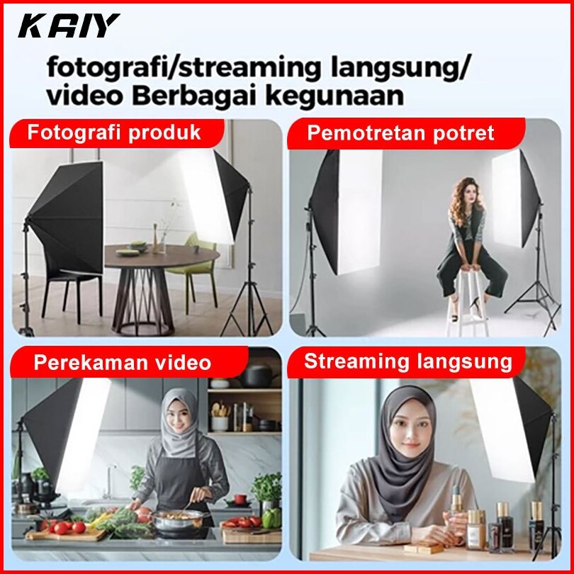 Kaiy Softbox Lighting 300w Potret Fotografi 50x70cm Lampu Konten Kreator Lampu Foto 3 Suhu Warna Lampu For Video Photo