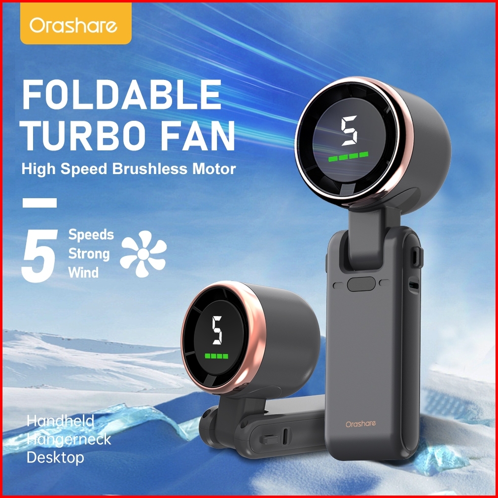 Orashare Hf03pro Dapat Dilipat Kipas Mini Angin 5 Speeds Rechargeable 4000mah Battery Digital Display Adjustable Turbo K