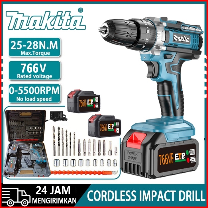 Maklta 766vf Mesin Bor Baterai Cas 10mm Bor Listrik Murah Bor Tangan Baterai Besi Tembok Beton Kayu - Cordless Drill Bor