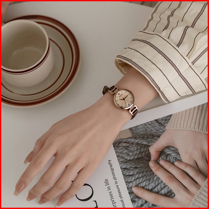 Holek 5266 Jam Tangan Wanita Anti Air Retro Perangai Kepopuleran Tali Kulit Quartz Jam Tangan Cewek