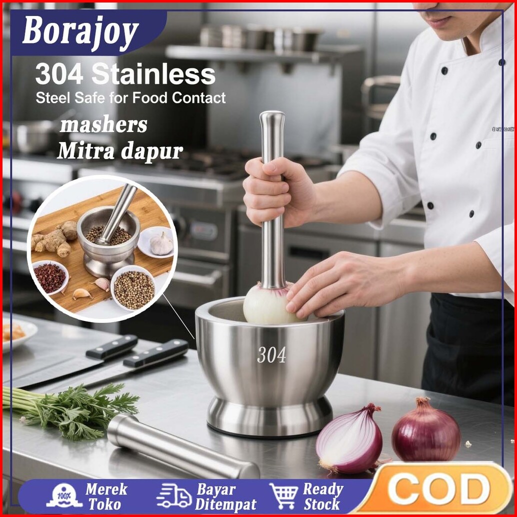 Cobek Stainless Ulekan Stainless Tumbukan Bumbu Dapur Dengan Tutup Mortar Pestle Tumbukan Bumbu Obat Stainless Cobek Ule