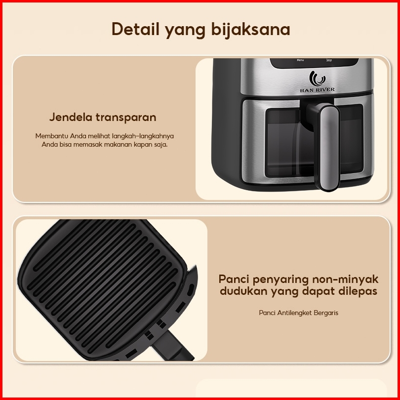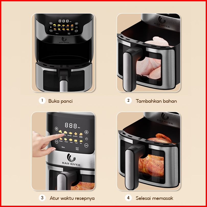 Han River Air Fryer 8l Tombol Layar Sentuh 650watt