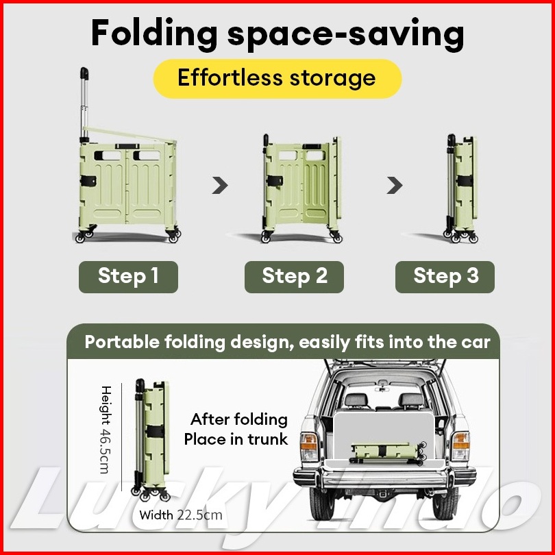 Troli Belanja Lipat 8 Roda - Kapasitas Besar Struktur Besi Kokoh Anti Goyang Roda Senyap