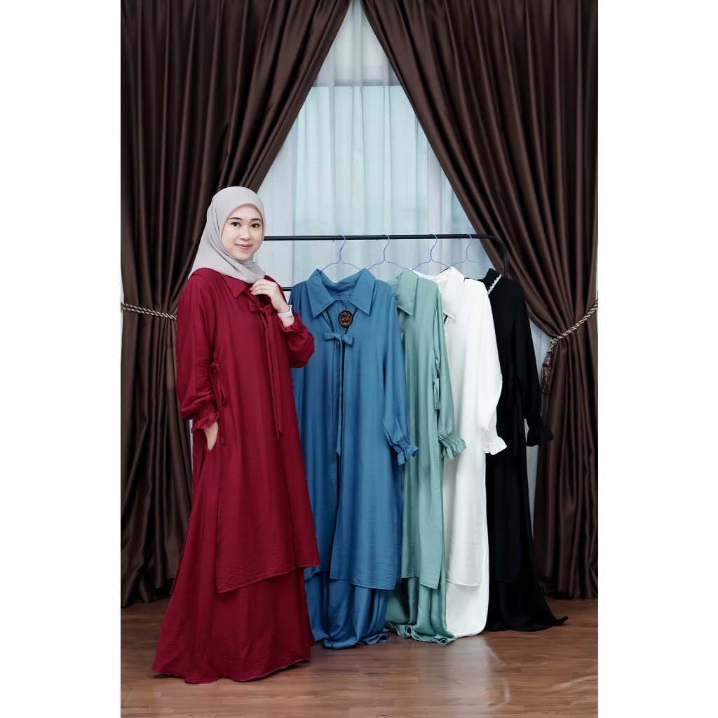 Amie X Fannis Amalia Sarimbit Gamis Lean 2025 Setelan Dres Rompi Outer Kemeja Pria Dewasa Anak