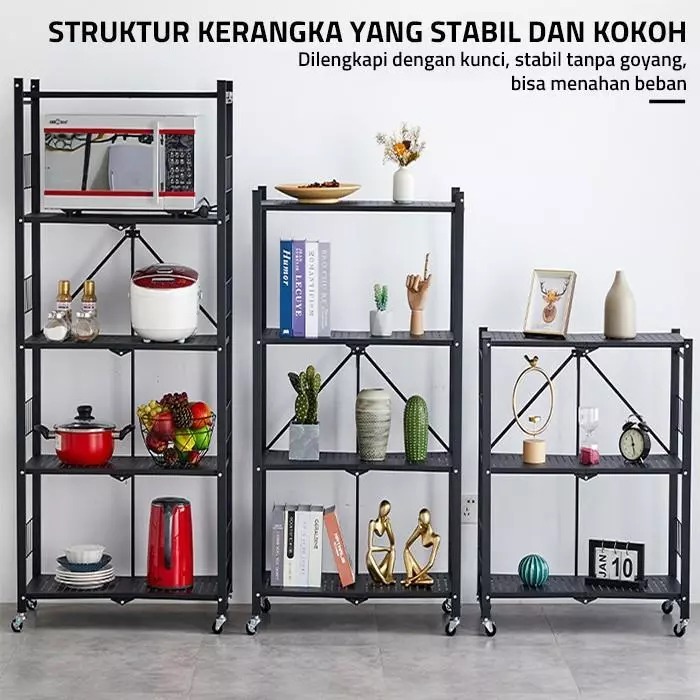 Rak dapur - lemari dapur - Rak Dapur Lipat Full Besi Serbaguna Kuat dan Kokoh Anti Karat 5 Susun Tingkat