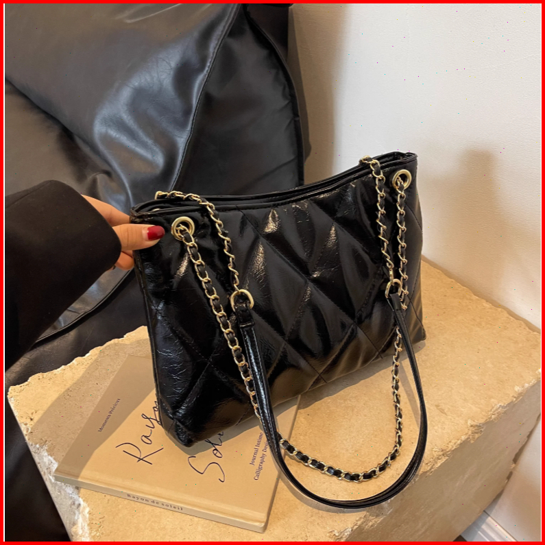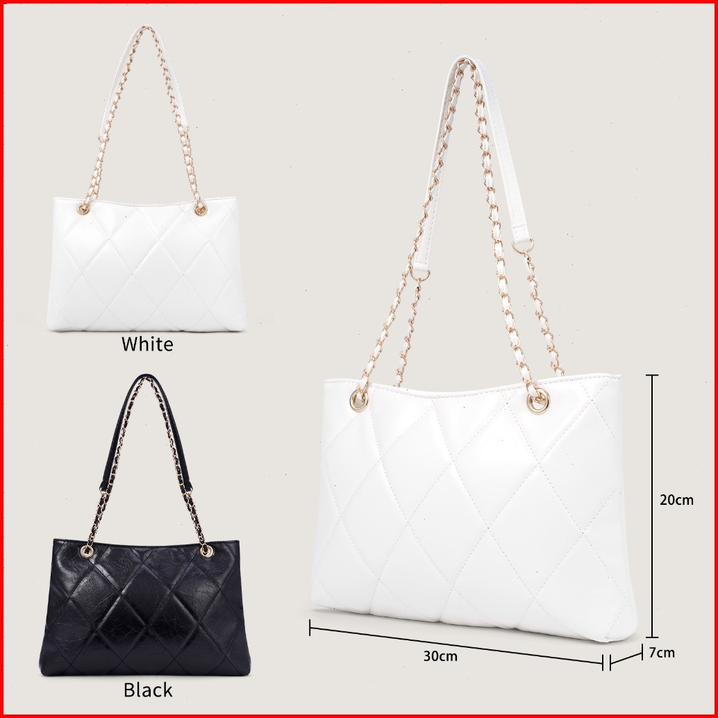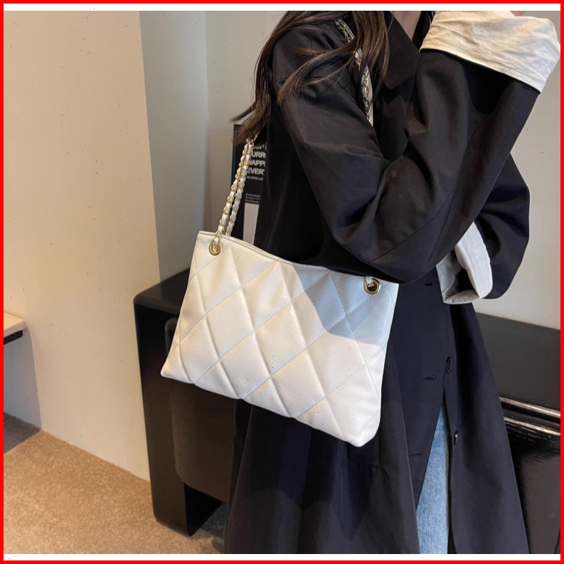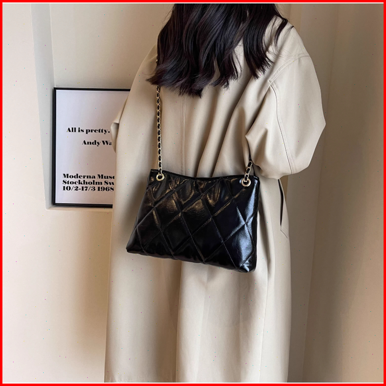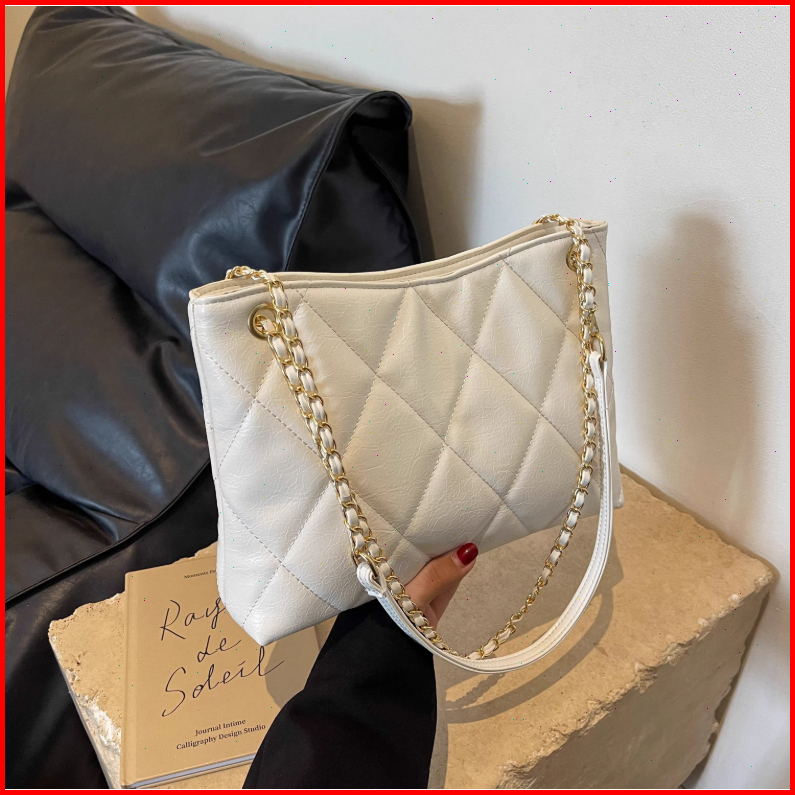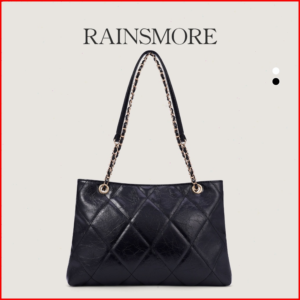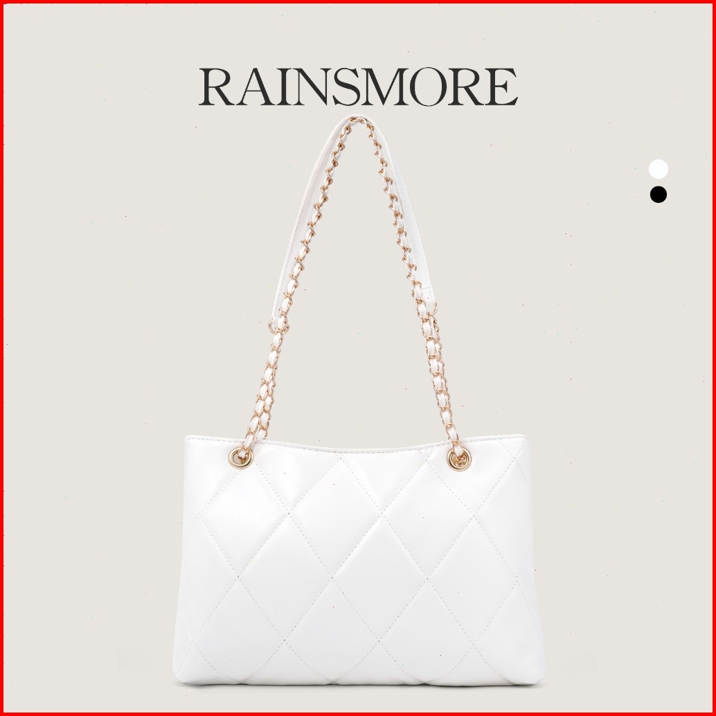 Rainsmore Tas Selempang Wanita Desain Quilted Motif Kotak Rantai Elegan Warna Polos Gaya Modis Serbaguna Untuk Kerja Dan