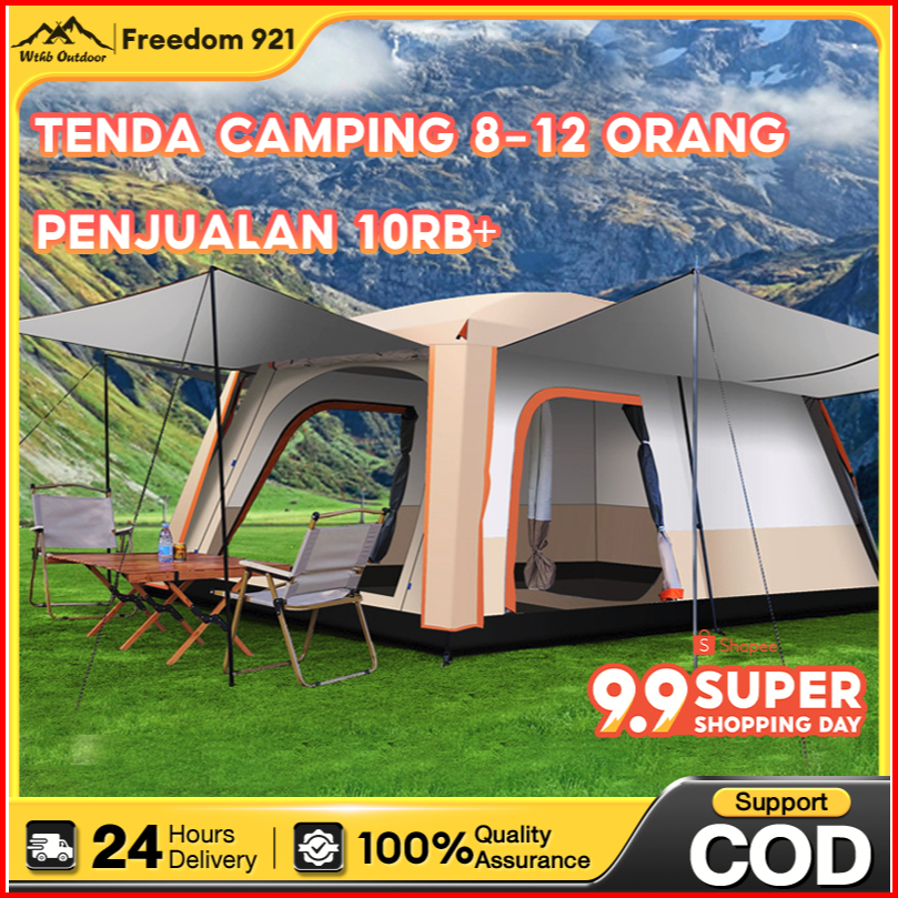 Fd921tenda Camping 8-12 Orang Outdoor 2 Ruangan Tenda Glamping Automatic Waterproof Luxury Besar