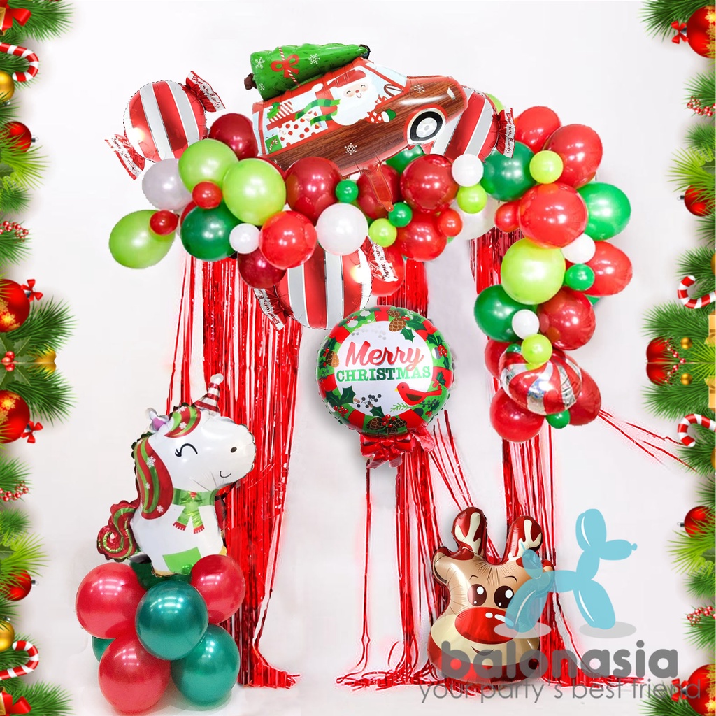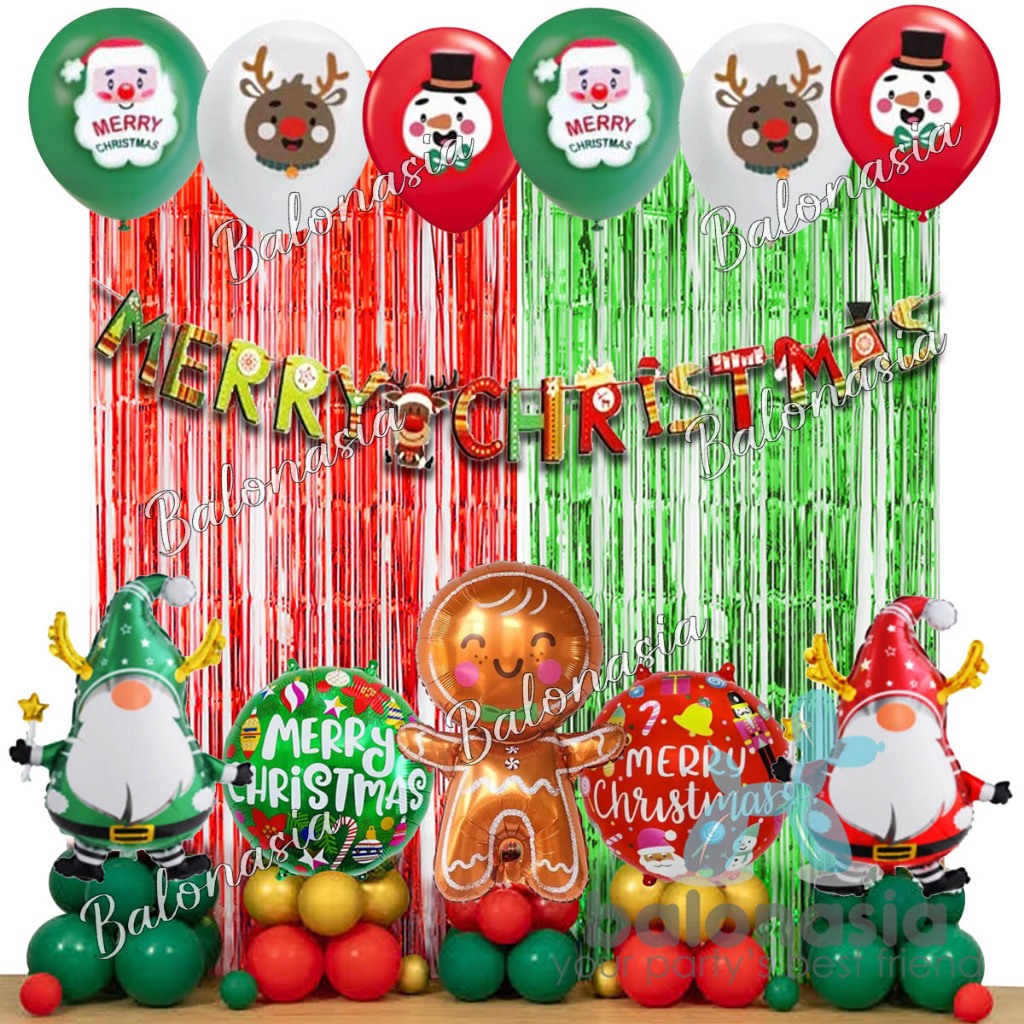 Paket Lengkap dekorasi Rumah ruang tamu - Dekorasi Natal Lengkap Set Tirai Foil Silver - hiasan Christmas termurah