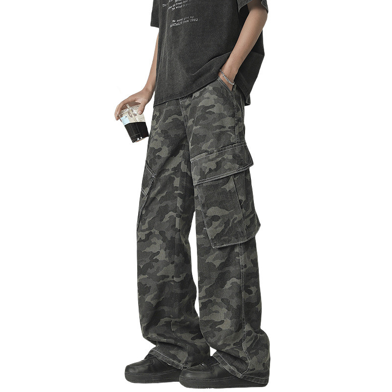 [Star]celana pria outdoor cargo motif army - lurus & longgar - banyak kantong - gaya urban