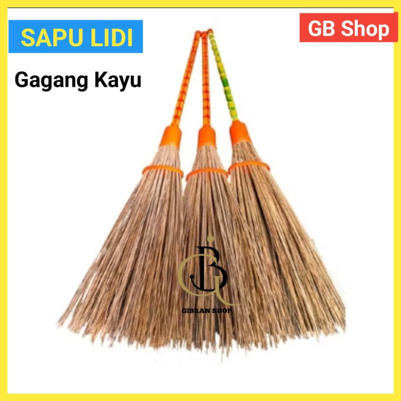 SAPU LIDI Sapu Taman murah jumbo premium sapu lidi lebih tebal gagang kayu warna biru