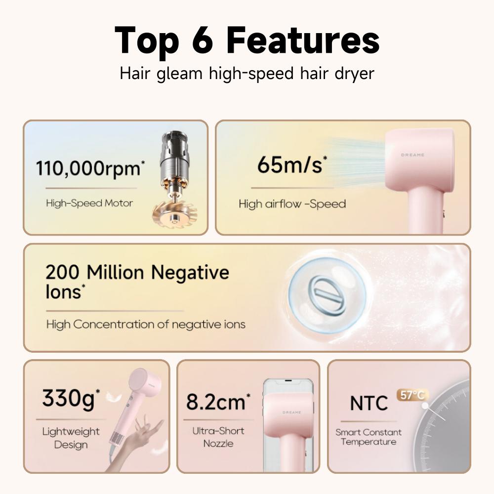 Dreame Hair Gleam Hair Dryer | High Speed 2 Mins Fast Drying | 330g Lightweight