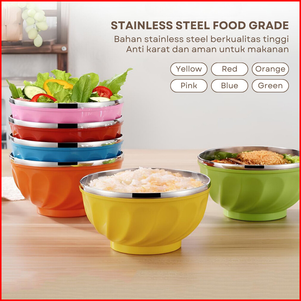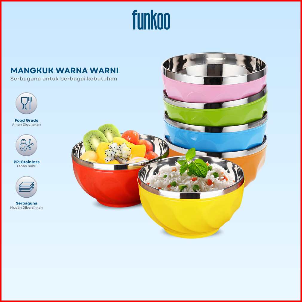 Funkoo Mangkuk Warna Warni Bahan Pp Dan Stainless Tahan Panas Serbaguna Dengan Tutup Anti Tumpah
