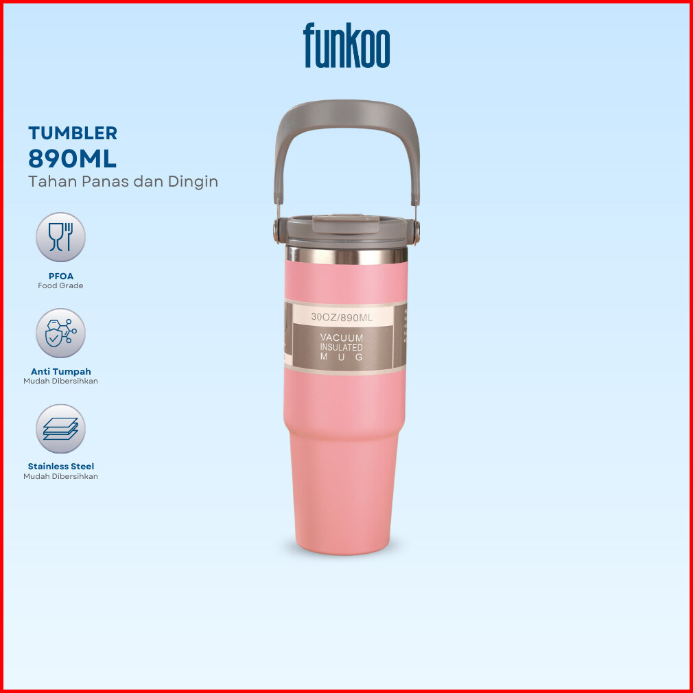Funkoo Tumbler 890ml Stainless Steel Anti Tumpah Vacuum Insulated Aman Food Grade Untuk Panas Dingin