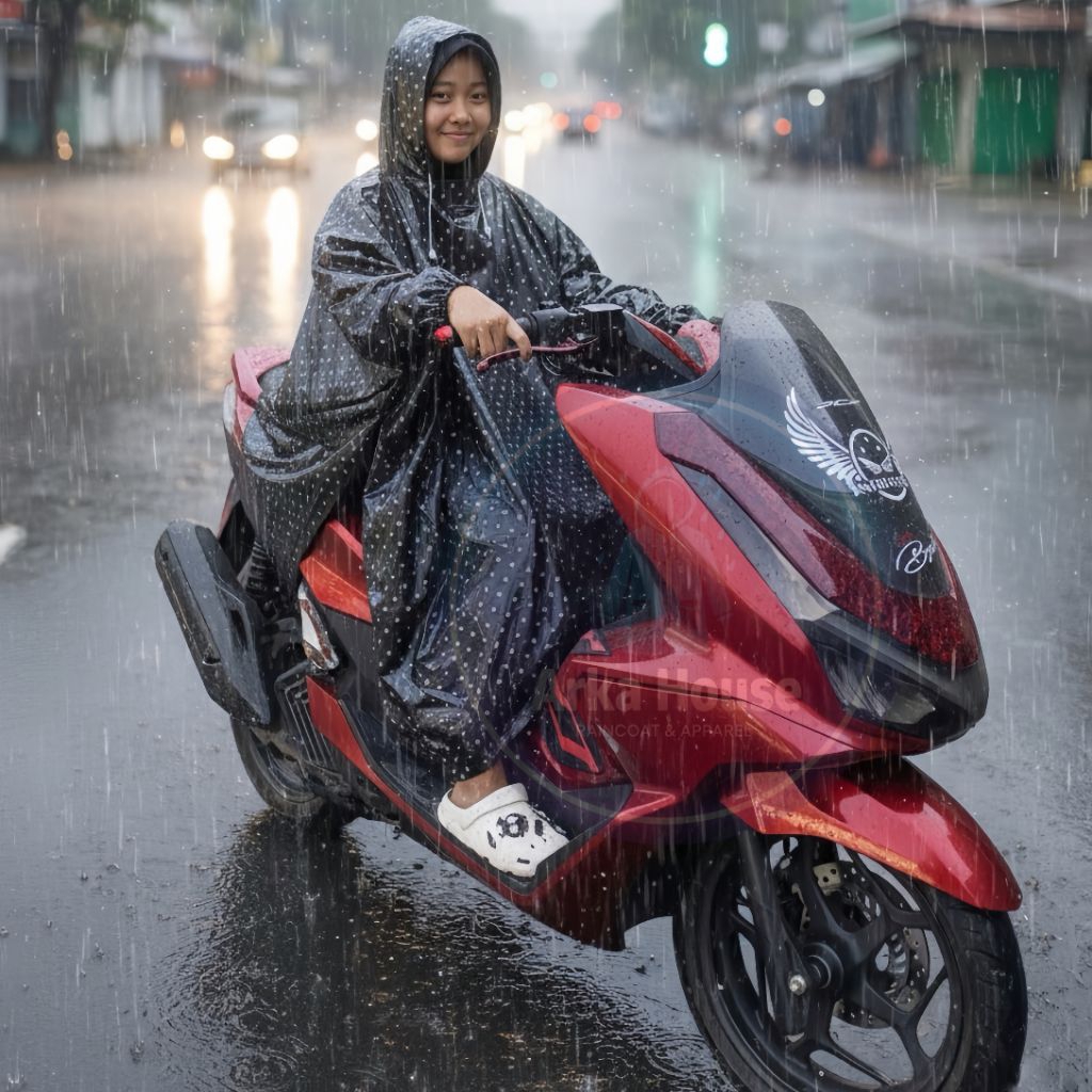 Jas Hujan Ponco Kelelawar Polkadot Lengan Panjang Anti Air untuk Pria & Wanita