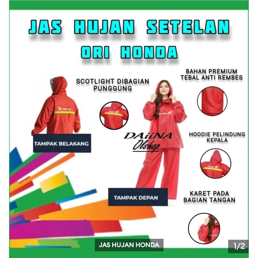 Jas Hujan Honda Setelan Celana Karet Dengan Lampu