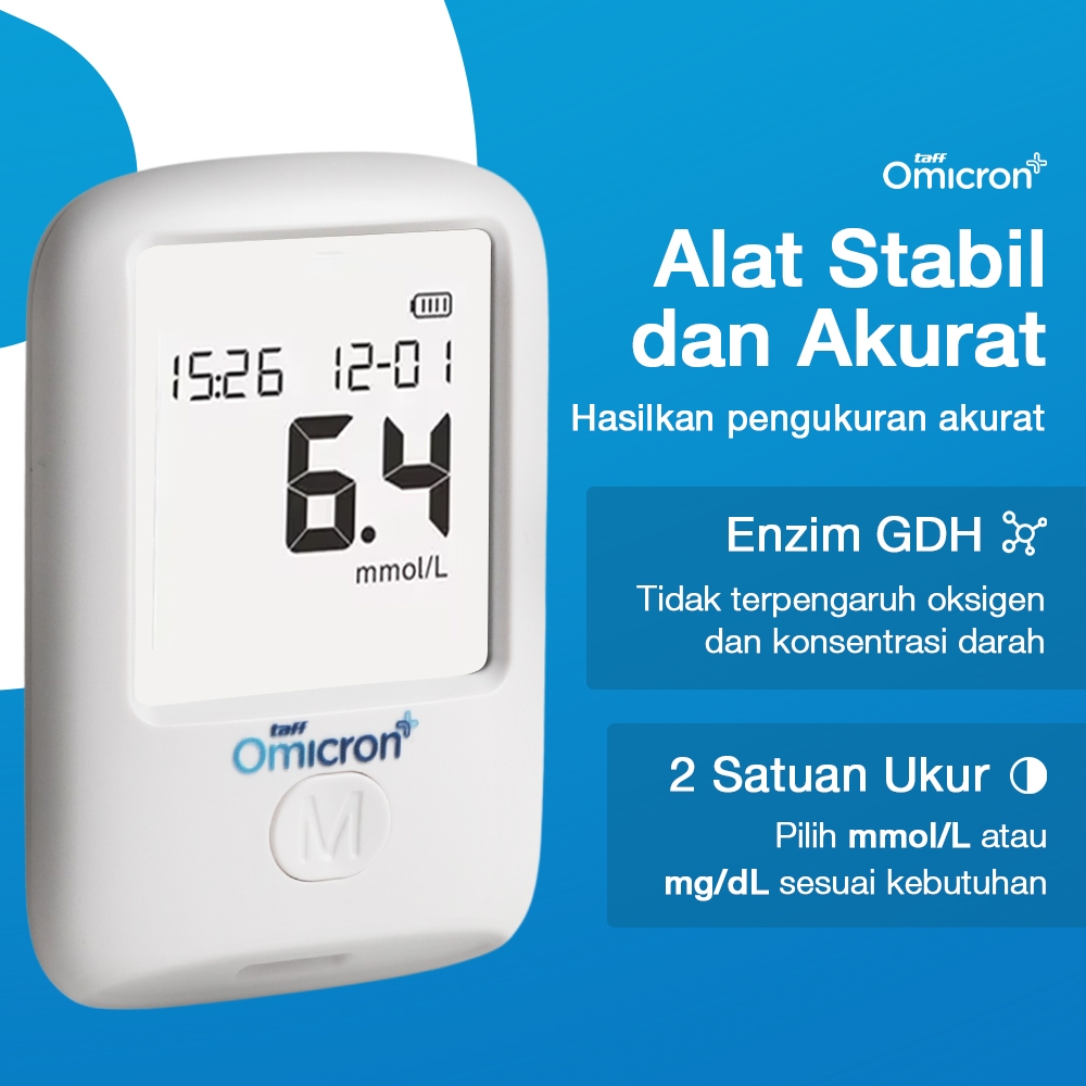 TaffOmicron Cek Gula Darah Asam Urat 2in1 Glucometer Kit 25 Test Strip - T3 - White Original