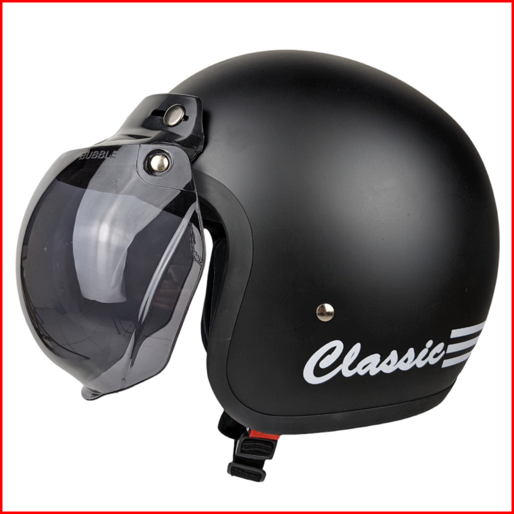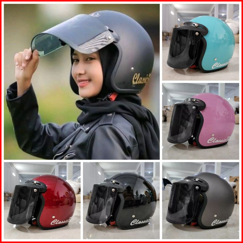 Helm Bogo Dewasa Clasik Tiga Garis Kaca Free Packing Kardus Dan Pengaman