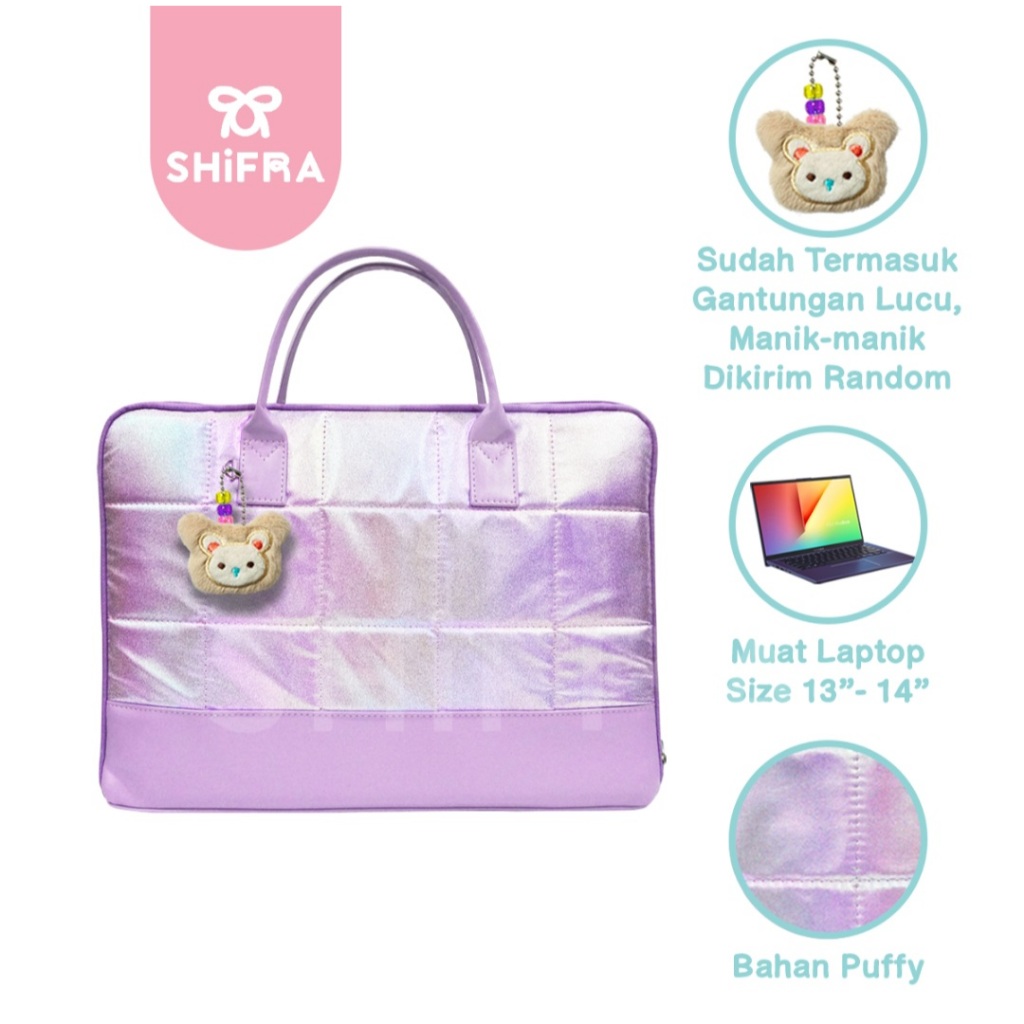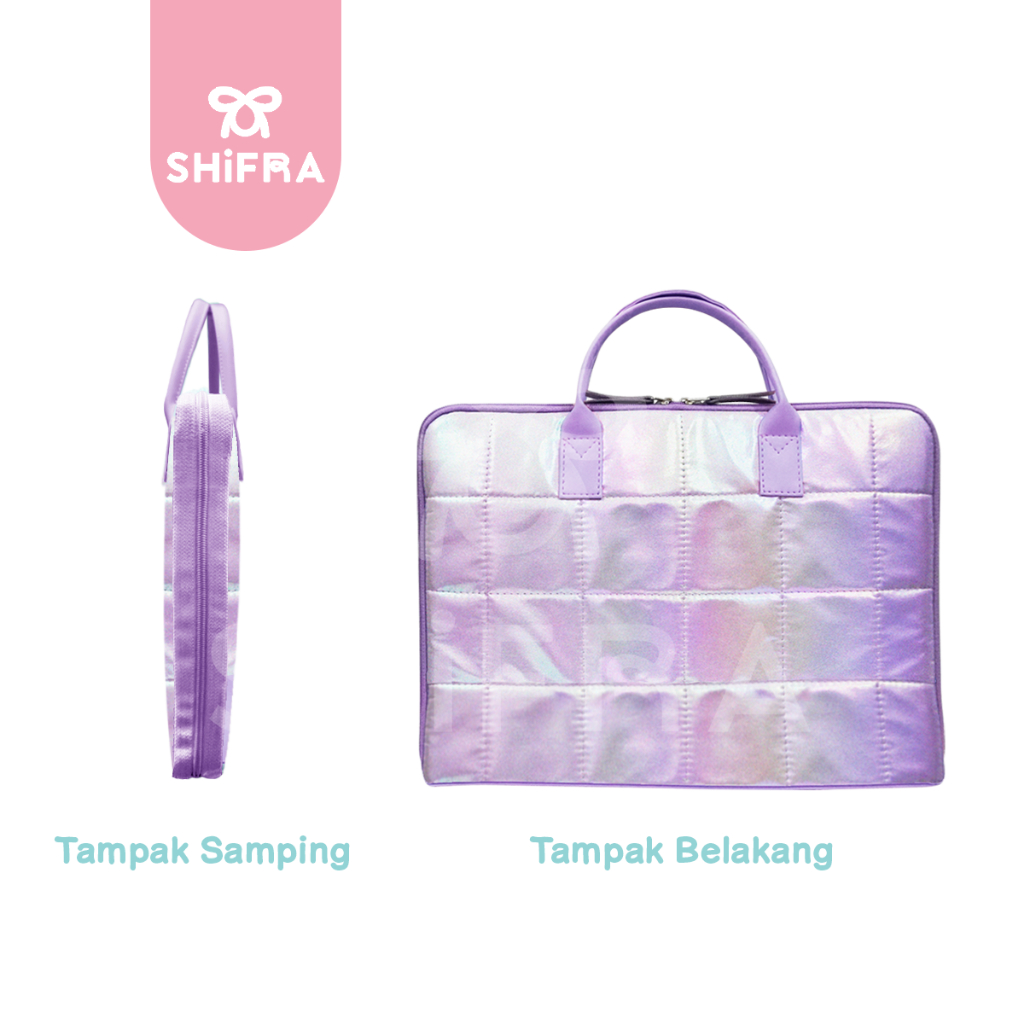 Shifra Tas Laptop Jinjing 14 inch Waterproof Puffy Pillow Kotak Hologram Metalic
