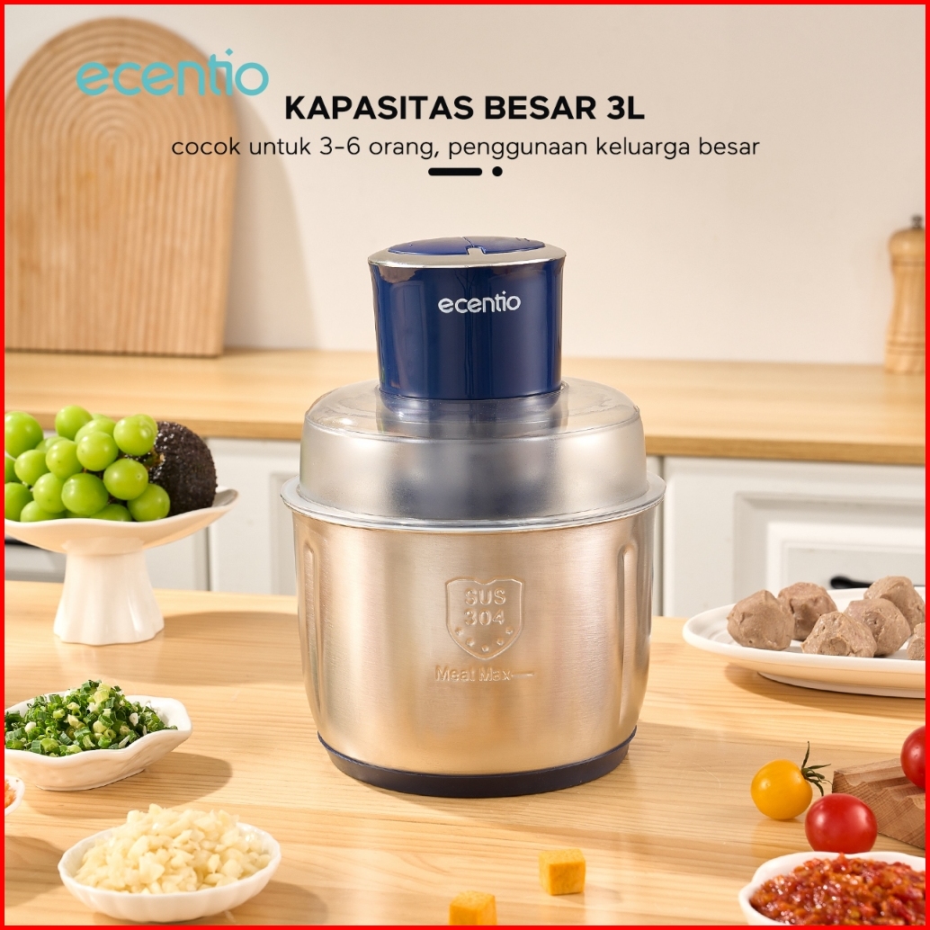 Ecentio Food Chopper 3l Penggiling Daging Stainless 4 Mata Pisau Multifungsi Chopper Daging 300w 2 Kecepatan Food Grade