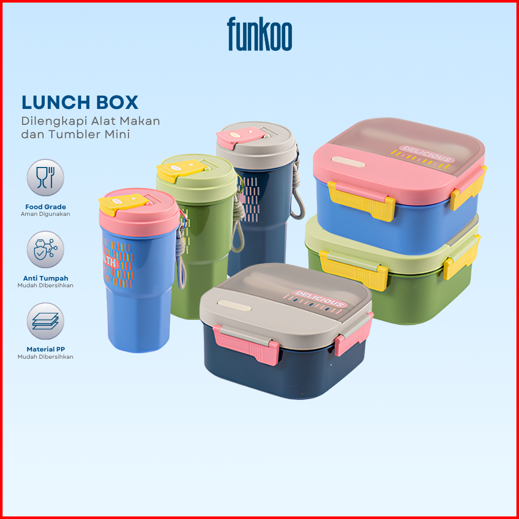 Funkoo Lunch Box Set Kotak Makan Multifungsi Dengan Tumbler Mini Food Grade Anti Tumpah