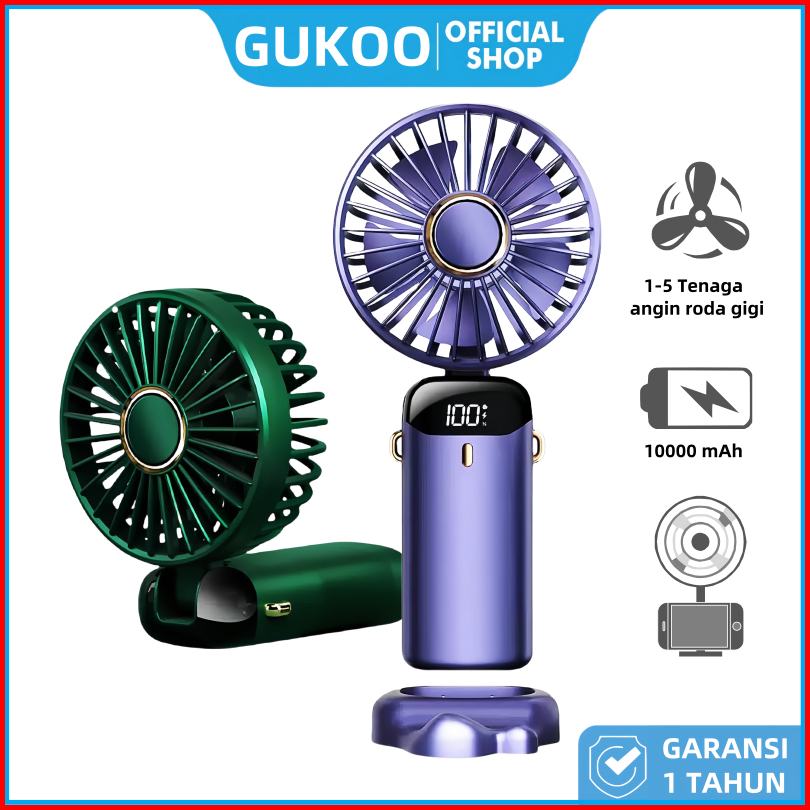 Gukoo Kipas Mini Portable 10000mah - Bisa Dilipat 5 Level Kecepatan - Gratis Ongkir