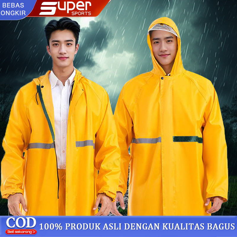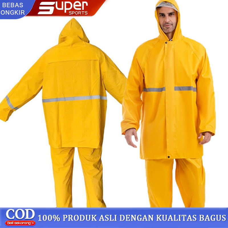 Super Jas Hujan Terusan Mantel Ponco Dewasa Raincoat PVC Proyek Samudra Ritsleting Tahan Air Tiga Lapis Manset Elastis T