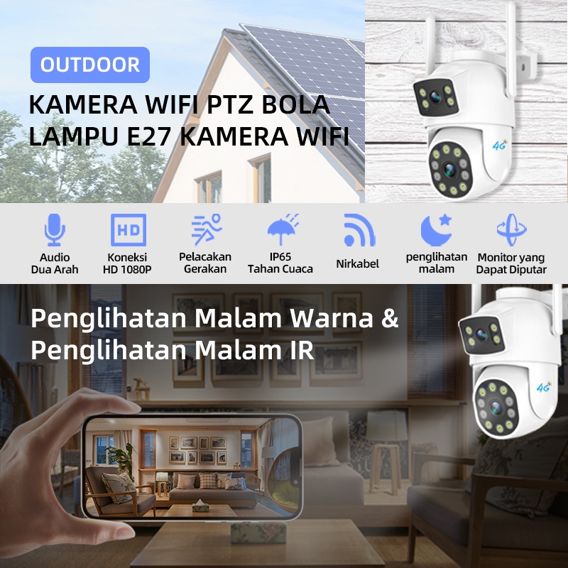 Franwell 4G CCTV Outdoor Dual Lens | 1080P Night Vision | Audio Dua Arah | Gratis SIM | Tahan Hujan
