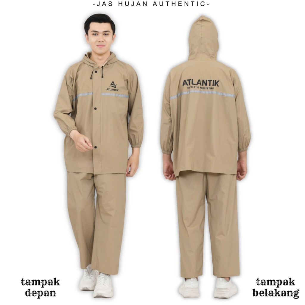 Jas Hujan Setelan Pria Dewasa Mantel Hujan Tebal Elastis Original Atlantik