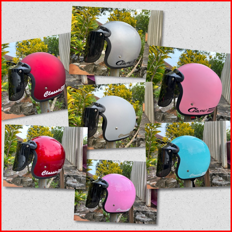 Helm Bogo Dewasa Polos Kaca Cembung Garis Sni