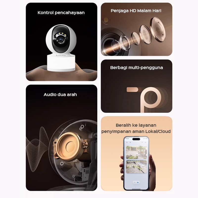 HAN RIVER CCTV Camera Pintar 3MP Full HD 360° Rotasi Pengawasan Jarak Jauh dan Audio interaktif