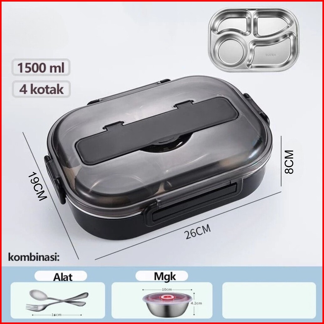 Rumahcantik - Lunch Box 304 Stainless Steel Baja Tahan Karat Food Grade Kotal Bekal Bento Set Tahan Panas Dengan Alat Ma