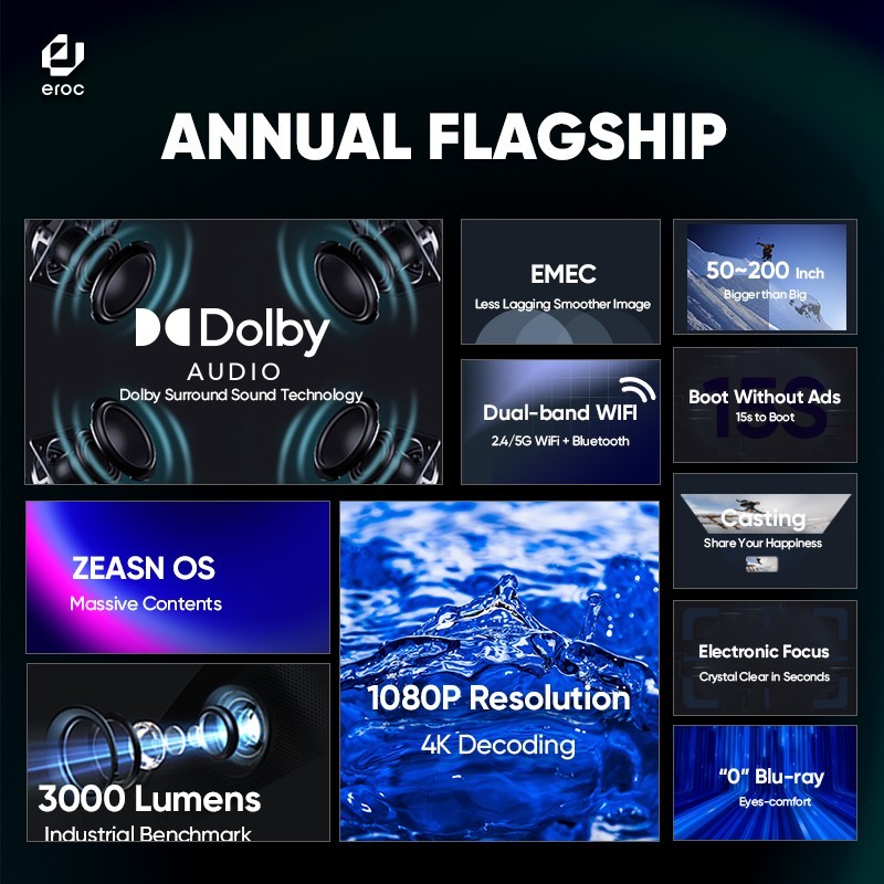 EROC Max Android - Dolby Audio - Full HD - Built in Speaker - 3000 Lcd projector (OCMNSR)