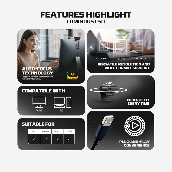 Fantech Luminous C50 2K QHD Quad HD Autofocus Webcam 360° Rotating