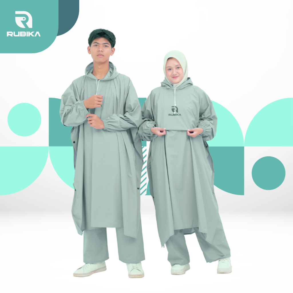 Jas Hujan Ponco dan Stelan Ponco Celana Mantel Hujan RUBIKA Raincoat Kelelawar Bahan PVC Tebal Elastis Berkualitas Termu