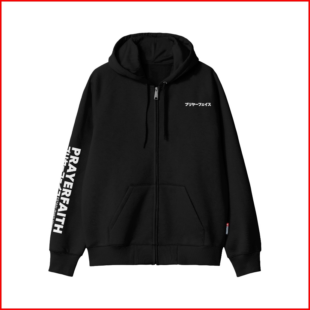 Prayerfaith - Zipper Closure Hoodie Lift Kanji Pria Wanita