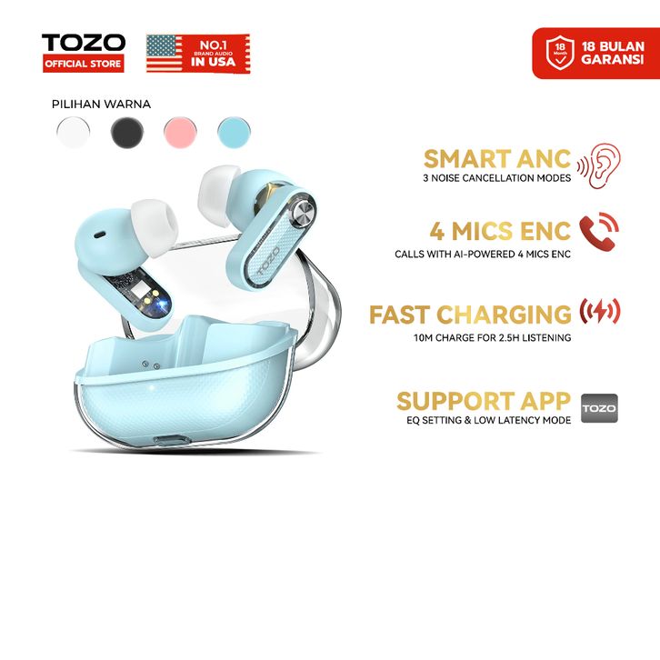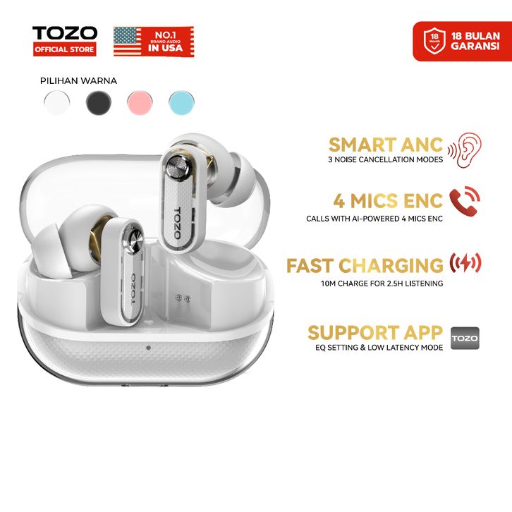 Smart TWS 6 mics Hybrid ANC + AI 4 Mics ENC wireless earbuds Clear Calls powerful bass