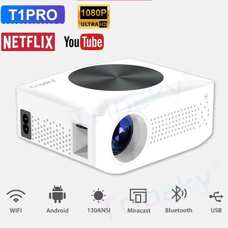 JNDTECH Proyektor Android TV T1pro 1080P Smart Projector Android 9.0 Ram 2G Rom 16G Home Theater mini Proyektor